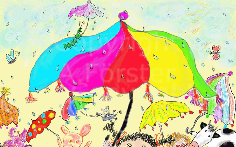 Fünf kleine Zwerge halfen mir bei dem Bild. Jeder hatte so seine Ideen.